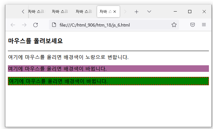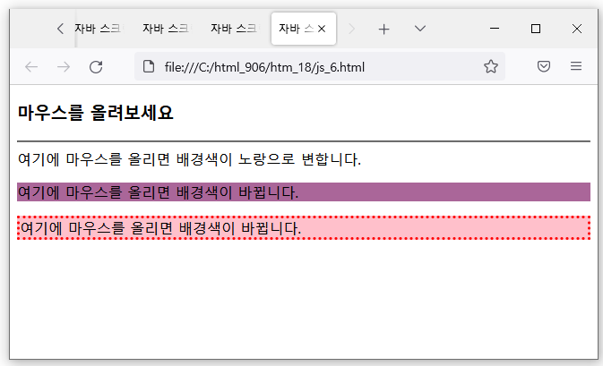 여기에 마우스를 올리면 배경색이 바뀝니다.