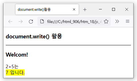 document.write('문자열 : 단일인용부호로도 표현'+"<br>");