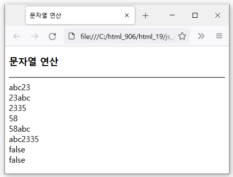 document.write( 23+35+"abc" +"<br>"); //58abc