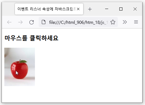 <title>이벤트 리스너 속성에 자바스크립트 코드</title>