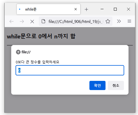 var n = prompt("0보다 큰 정수를 입력하세요", 0);