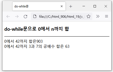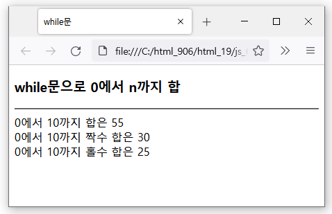 document.write("0에서 " + n + "까지 합은 " + sum + "<br>");
