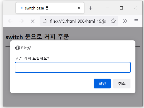 var coffe = prompt("무슨 커피 드릴까요?", "");