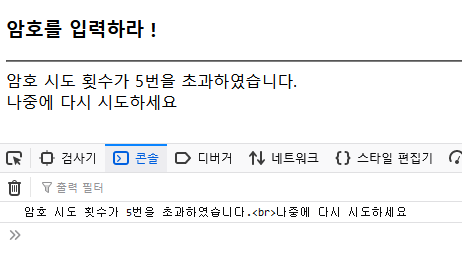 str = "암호 시도 횟수가 5번을 초과하였습니다.<br>"