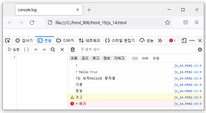 consol.log(str) 을 이용해서 콘솔창에도 입력해준 모습