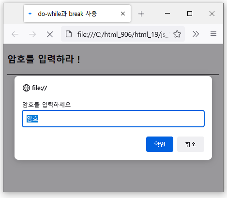"확인" 버튼을 클릭하면 사용자가 입력한 값을 문자열로 반환