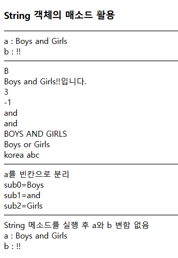document.write("<hr>String 메소드를 실행 후 a와 b 변함 없음<br>");
