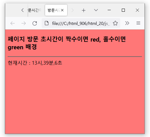<h3>페이지 방문 초시간이 짝수이면 red, 홀수이면 green 배경</h3>