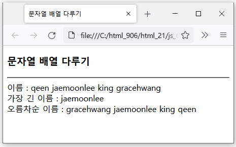 document.write("가장 긴 이름 : " + longest + "<br>");