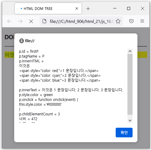이들은 HTML 문서의 각요소를 개체화 한 것이라는 뜻으로 HTML DOM 객체라고 부른다.