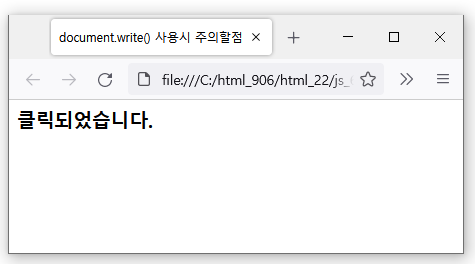 <body onclick="document.write('<h3>클릭되었습니다.</h3>')">