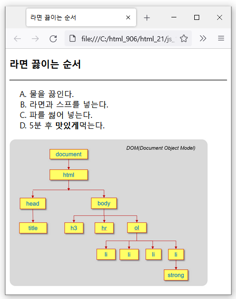 : DOM 객체는 HTML 페이지에 작성된 각 HTML태그를 객체로 만든 것이다.