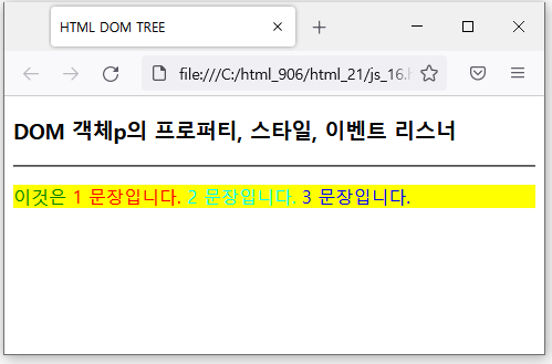 <h3>DOM 객체p의 프로퍼티, 스타일, 이벤트 리스너</h3>
