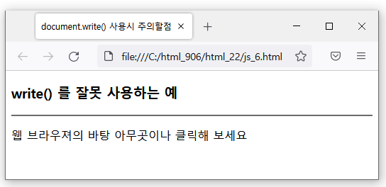 하지만 HTML 문서가 로드되어 출력이 모두 이루어지고 나면 document 객체가 닫히기 때문에