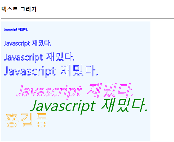 context.strokeText("Javascript 재밌다.", 10, 30 + i * 50);